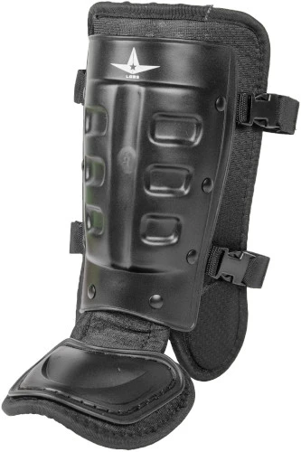Pro model batterÂ’s ankle guard with hard plastic shell on shin, foot